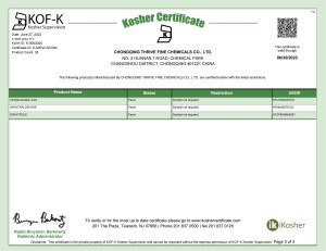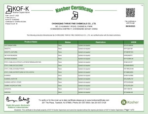 2013年5月,欣欣向荣公司21种产品通过了KOSHER认证。