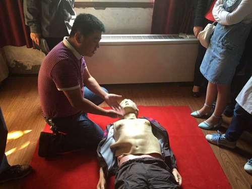 亓主任为大家现场做心肺复苏急救示范